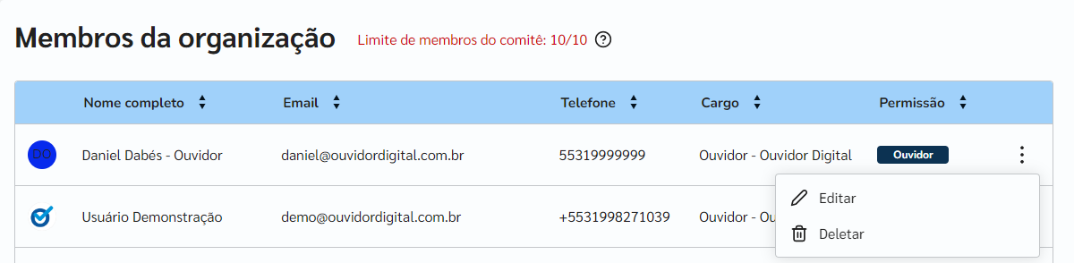 1. Escolha o membro que precisa ser editado, clique nos três pontinhos localizado ao final da linha e clique no botão "Editar".