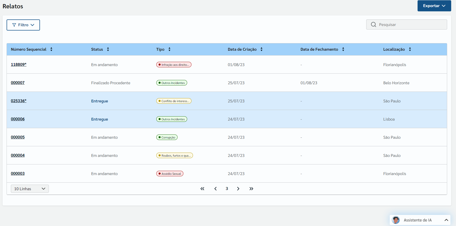 Clicando na seta (canto superior da tela, ao lado do número do relato), você terá acesso à todos os relatos (caso existam) aos quais tenha sido solicitada uma ação para você. Assim que acessar, você verá a lista com todos os relatos que o gestor do projeto pediu a sua ajuda. Clique em um dos relatos para ver as ações solicitadas para você e siga o processo novamente.