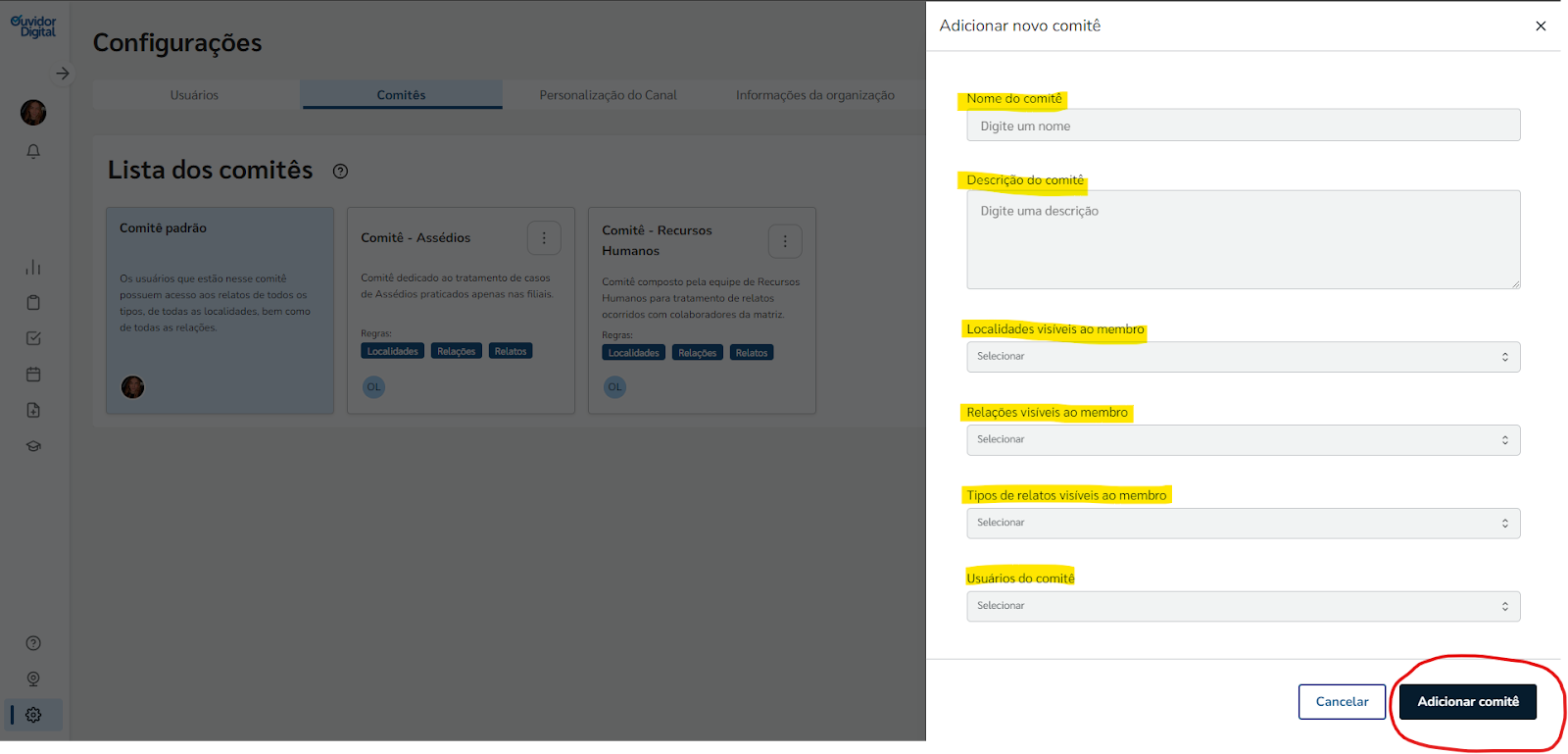 O Portal Ouvidor Digital está com mais uma funcionalidade para facilitar o dia a dia das organizações: trata-se dos Múltiplos Comitês. Antes, todo o processo de criação e gerenciamento de comitês precisava ser solicitado ao nosso time de Suporte e era realizado de forma interna. Com a novidade, as equipes que utilizam o portal passam a fazer a gestão por conta própria.