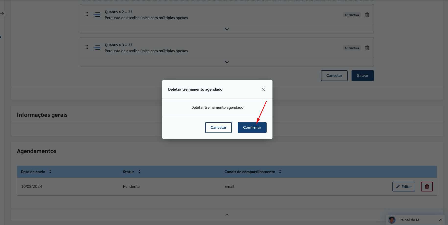 Veja o passo a passo do agendamento de envios de Treinamento.